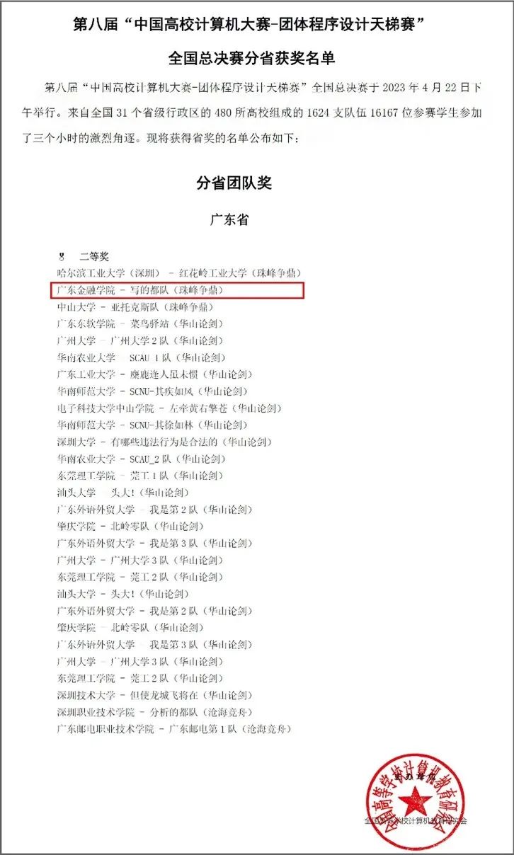 公司304永利集团有限公司员工徐展鹏、廖斌锴、杨煌、谢李贝蕾、曹家豪、胡主艳、陈萃薇、陈思涛、陈欣琳及汤雨杭等10位同学组队“写的都队”队参加了难度最大、级别最高的珠峰争鼎组比赛。经过激烈角逐,公司喜获两个奖项:(1)团队获得广东省团队二等奖(二等奖组别总分全省排名第二);(2)徐展鹏同学获得国奖个人三等奖。这也是公司首次在该赛事斩获奖牌。