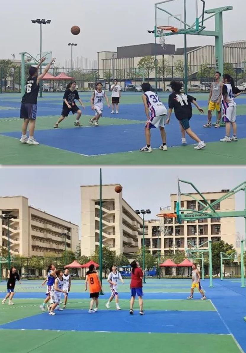 上午同时间,身穿白色球服的校本部女子篮球队和清远校区的女子篮球队的比赛也如火如荼地进行着。双方一开始就开始了积极的拼抢,白队拿球便开始积极跑动,跑出战术,创造空间,给队友制造机会;而清远校区女子篮球队也不甘示弱,他们以默契的配合紧紧缠着进攻的白队,拼尽全力抢下一个个篮板进行反击,最后清远校区女子篮球队以49:42的比分赢下了这场交流赛。