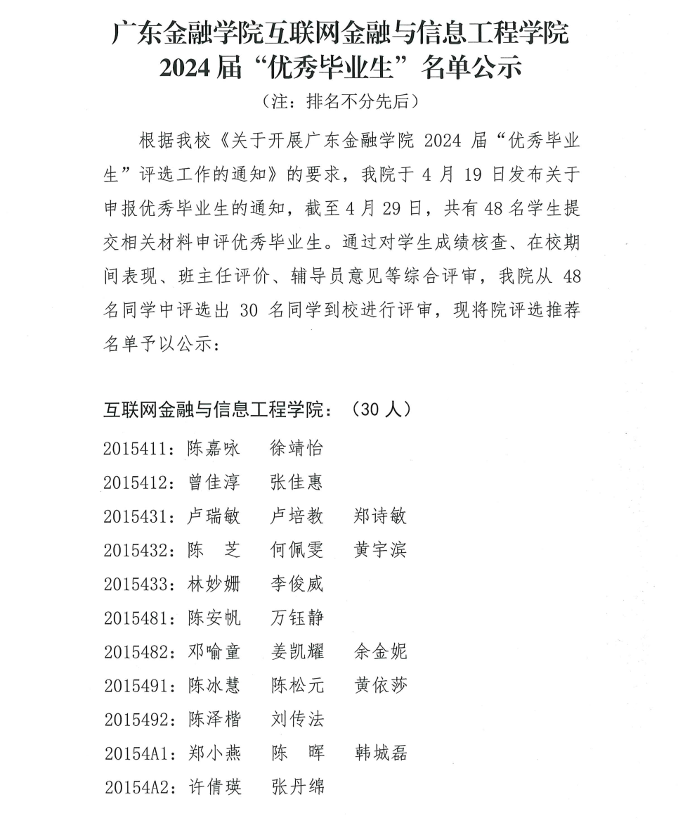 304永利集团有限公司2024届“优秀毕业生”名单公示